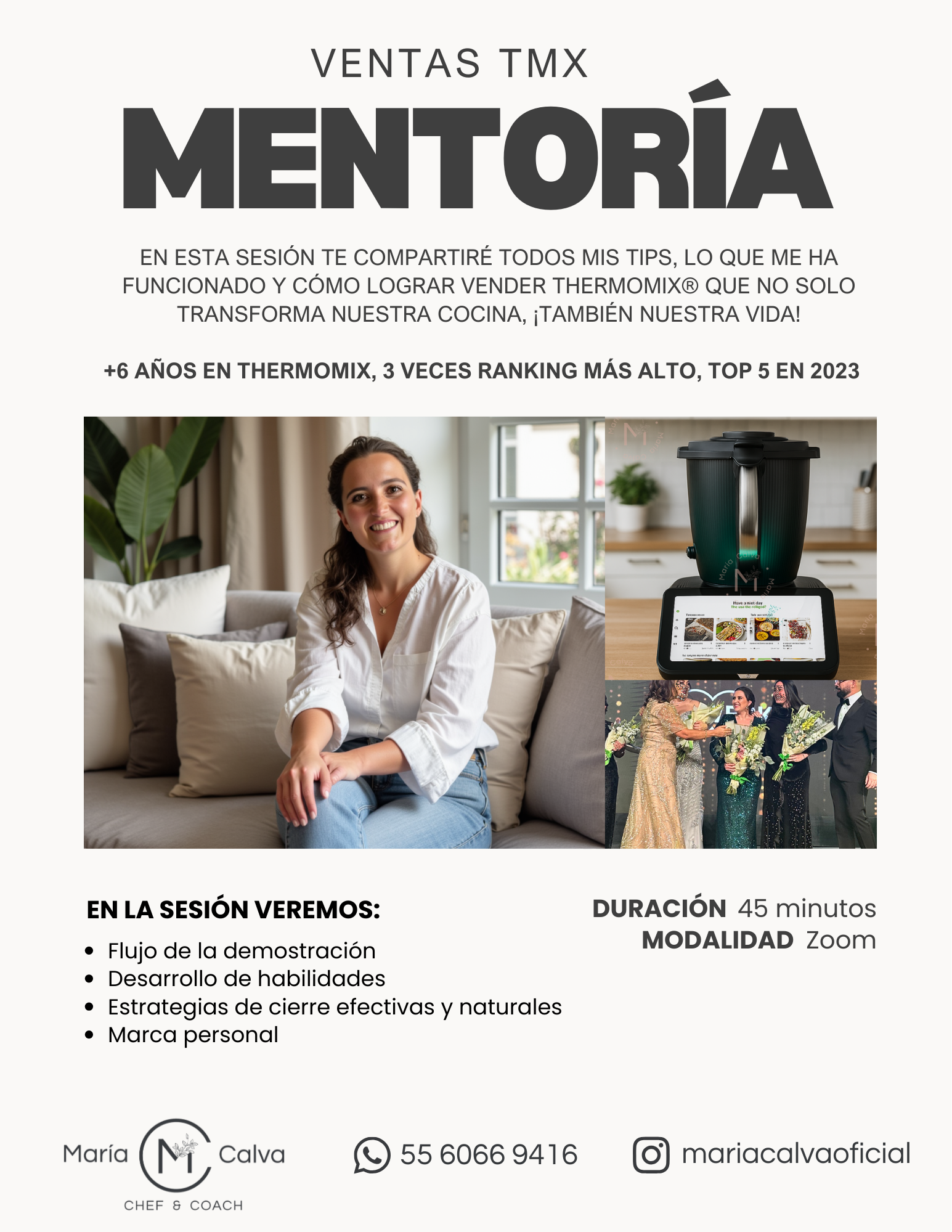 Si quieres empezar a vender Thermomix® o quieres mejorar tus ventas, pero te falta orden, claridad y un plan para que las ventas se vuelvan constantes (sin perseguir, sin rogar y sin sentirte intensa), esta mentoría es para ti.